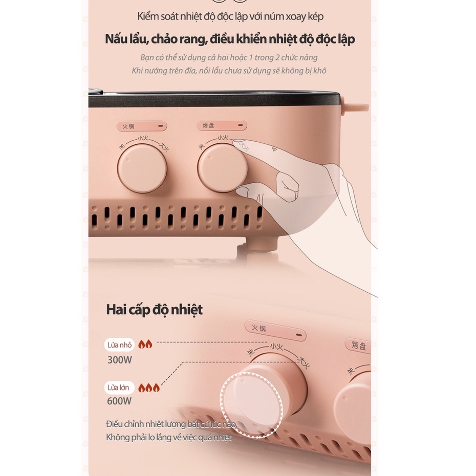 Công suất: 1200W (600W cho lẩu + 600W cho nướng)