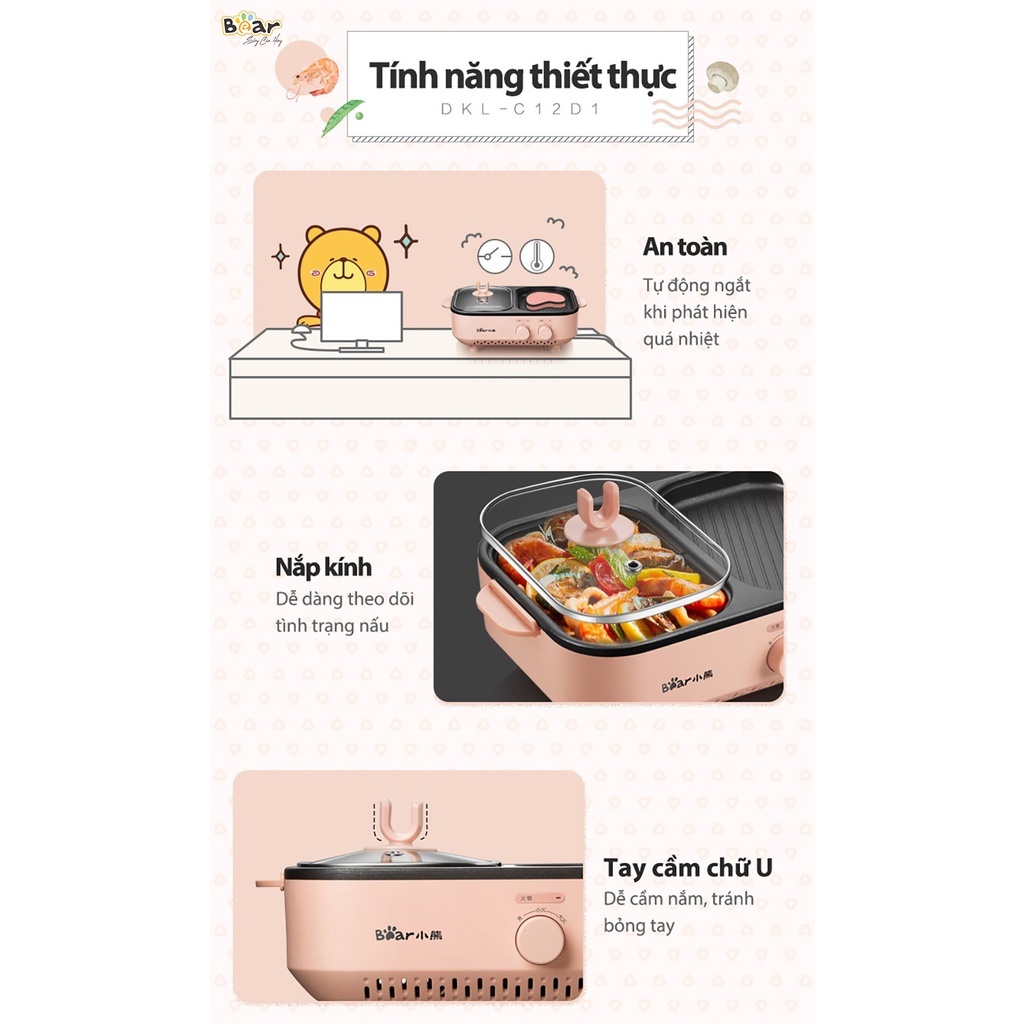 Tên sản phẩm: Nồi lẩu và nướng mini đa năng Bear DKL-C12D1