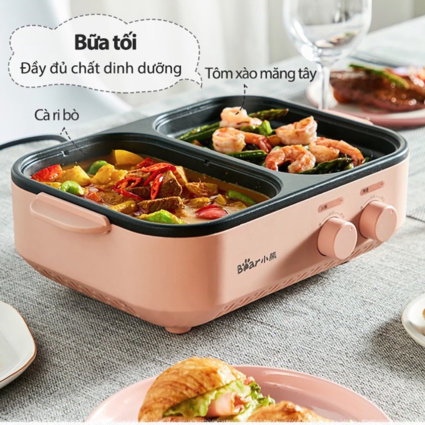 Nồi điện nấu lẩu và nướng 2 ngăn mini đa năng Bear DKL-C12D1 chính hãng (bản Quốc tế), bảo hành 18 tháng