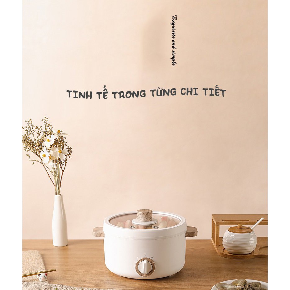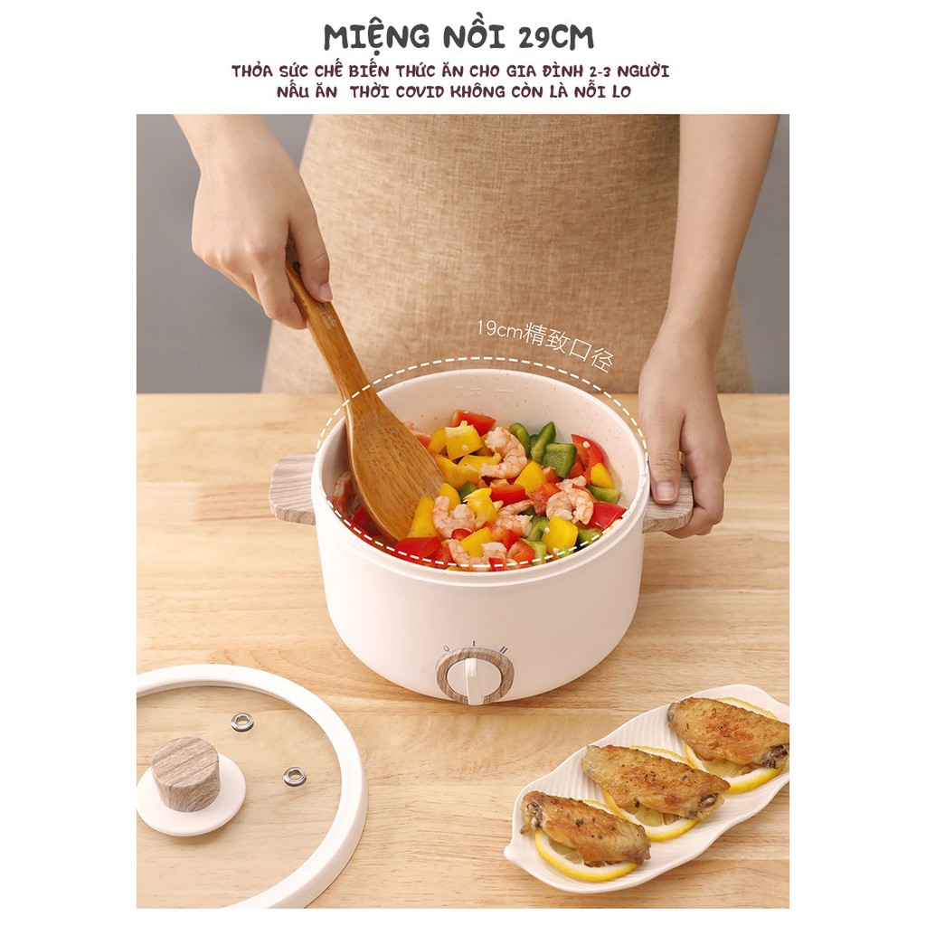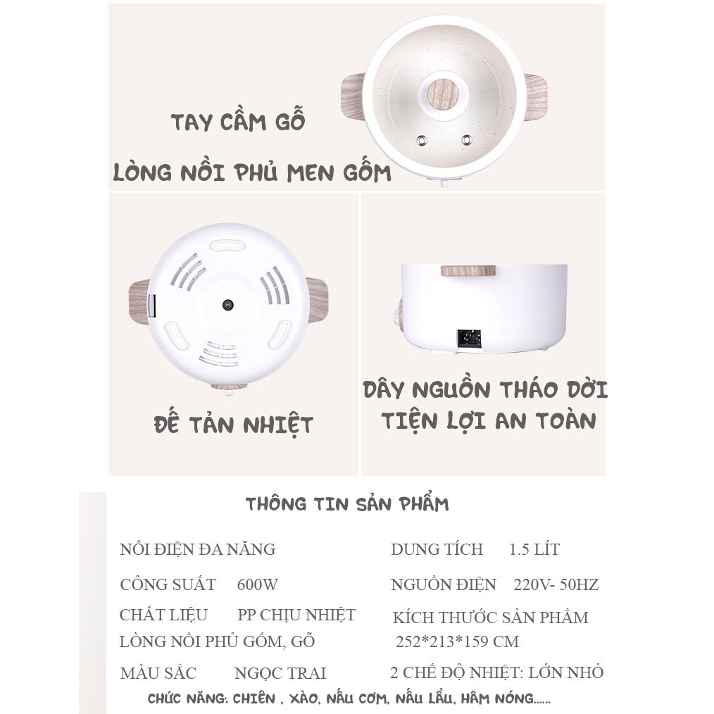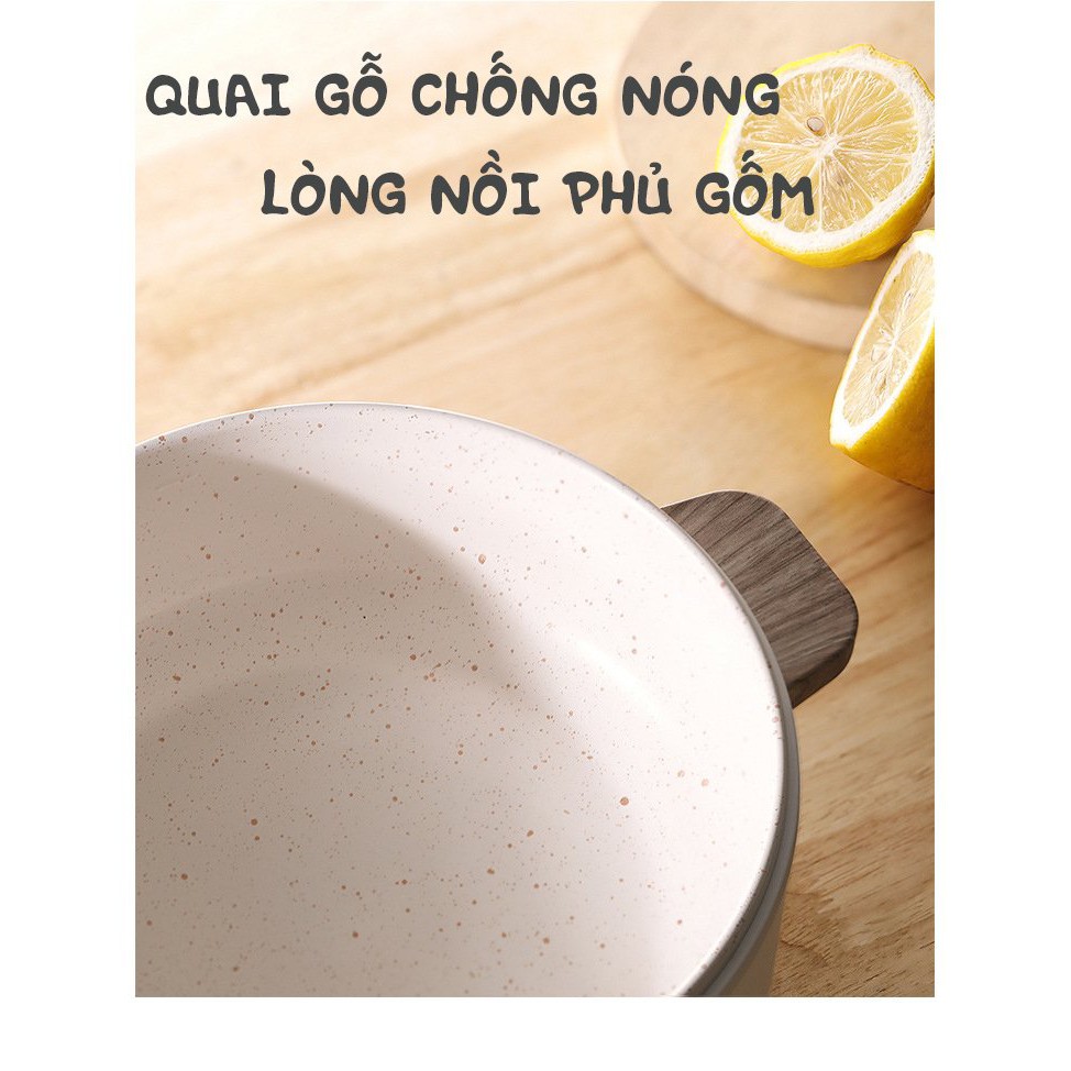 🍀 CHẤT LIỆU:Lòng nồi phủ gốm Ceramic, vỏ PP chịu nhiệt, quai cầm gỗ chống bỏng