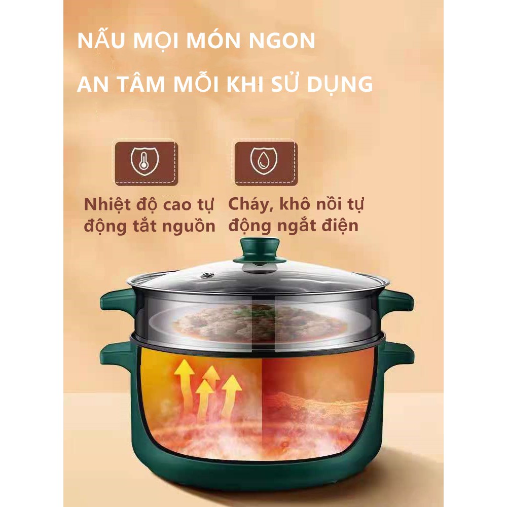 Nồi Điện Shiban Đa Năng Chống Dính 24cm Kèm Giá Hấp Inox, Nồi Cơm Điện, Chiên Xào, Nấu Canh, Hầm Cháo