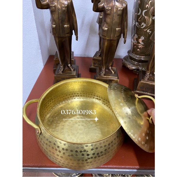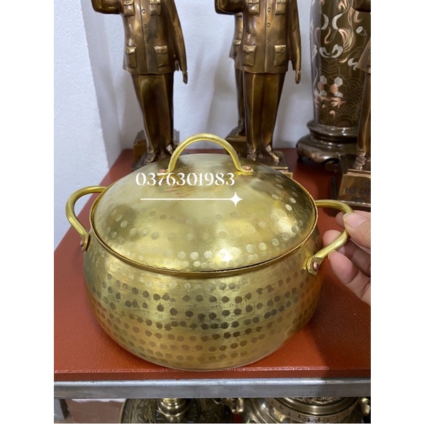 sản phẩm gồm 1 nồi đồng gò thủ công liền khối chất liệu đồng thau nguyên chấtngang 20cm