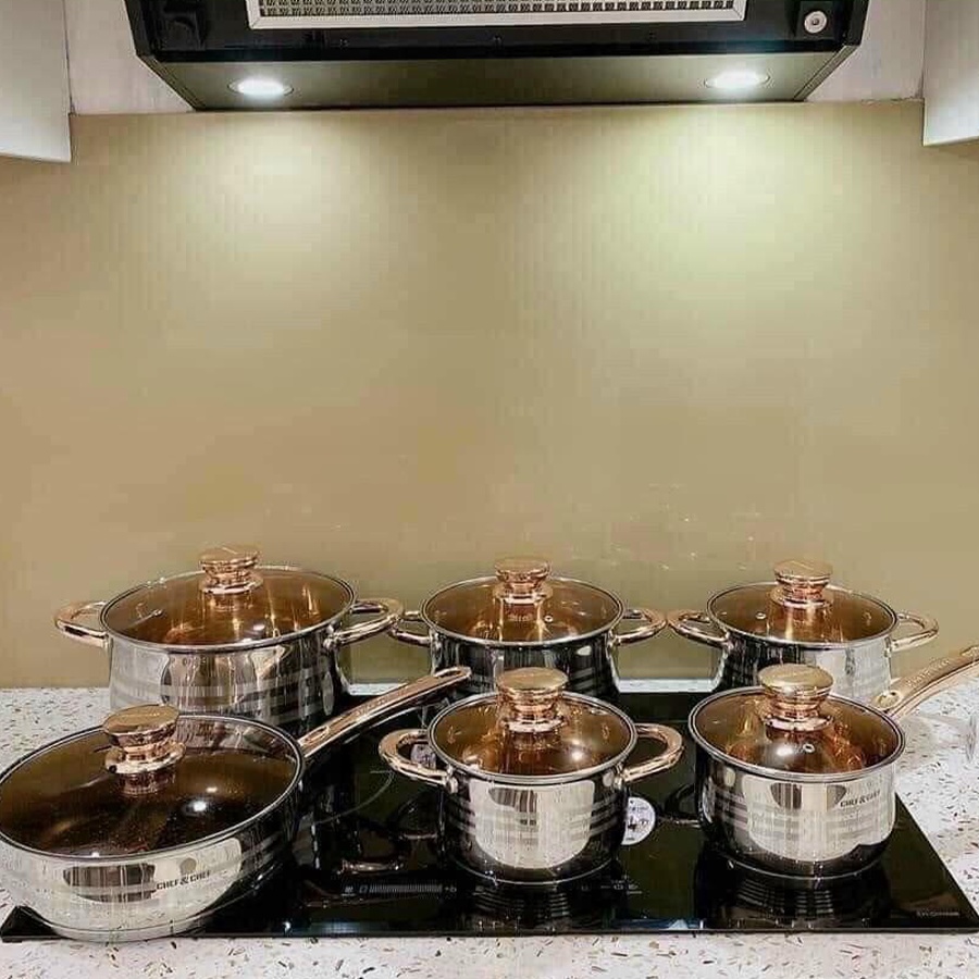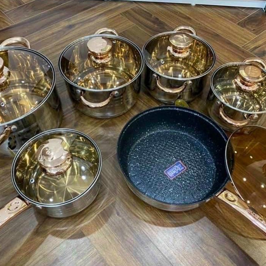 bộ nồi đức 9 đáy 12 chi tiết chất liệu thép không gỉ an toàn cho sức khỏe và bền đẹp sang trọng lịch sựGiá RFD