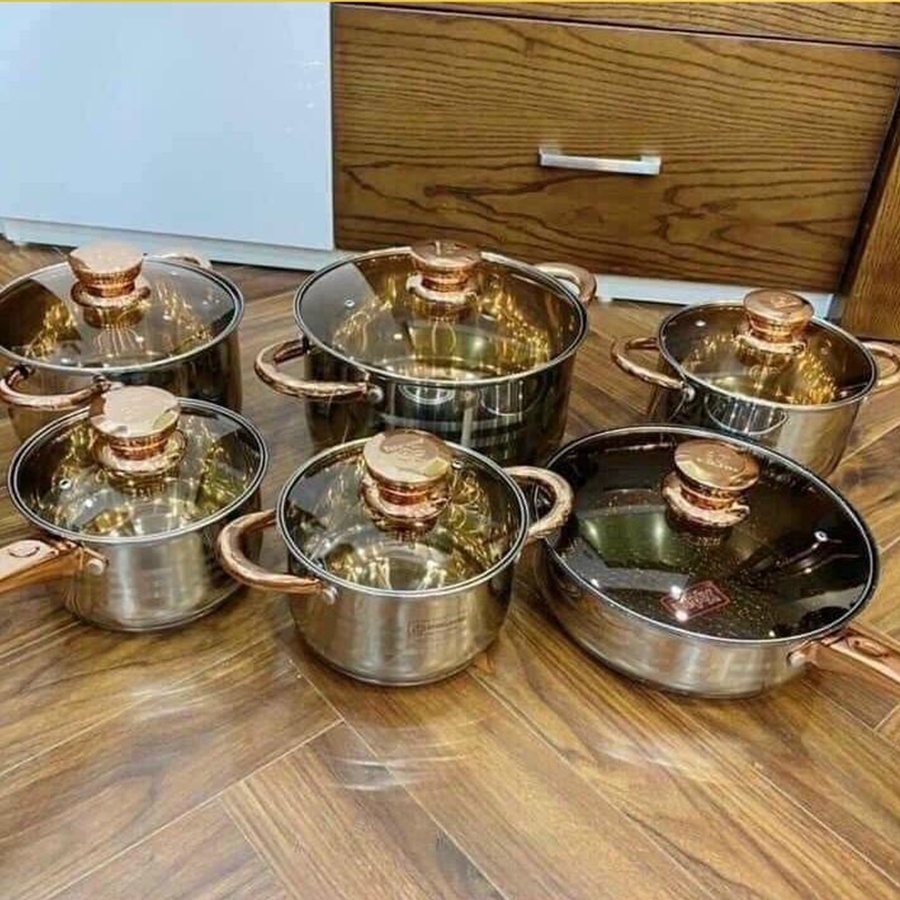 bộ nồi đức 9 đáy 12 chi tiết chất liệu thép không gỉ an toàn cho sức khỏe và bền đẹp sang trọng lịch sựGiá XCH
