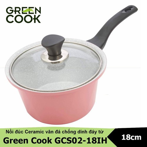 Giới thiệu Nồi đúc ceramic vân đá đáy từ chống dính 18cm Green Cook GCS02-18IH - quánh