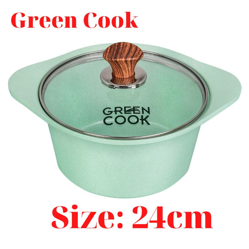 Nhà cửa & Đời sống > Dụng cụ nhà bếp > Nồi || Nồi đúc chống dính đáy từ men đá Green Cook size 24cm xanh ngọcCòn hàng