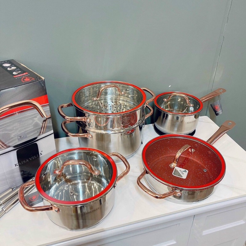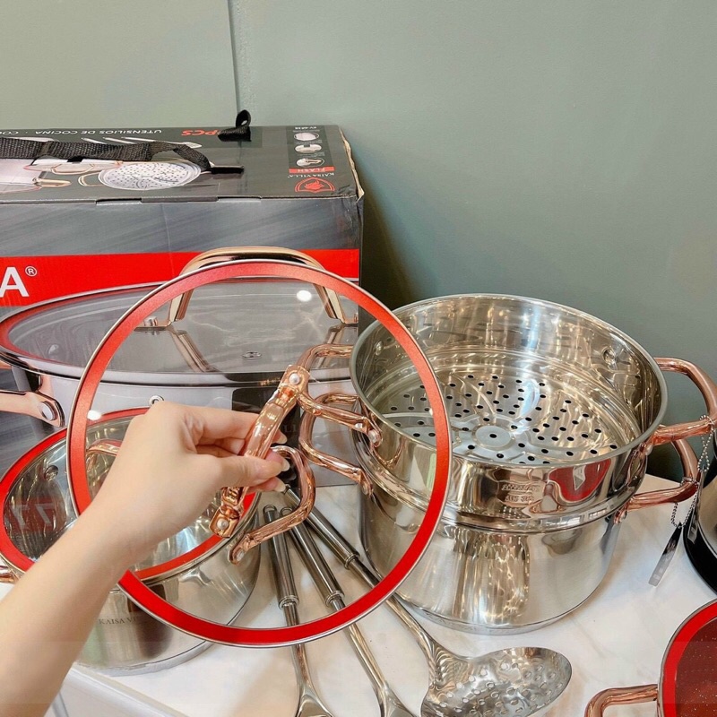 Nhà cửa & Đời sống > Dụng cụ nhà bếp > Nồi || Bộ nồi Đức KAISAVILLA có vỉ hấp 9 đáyCòn hàng