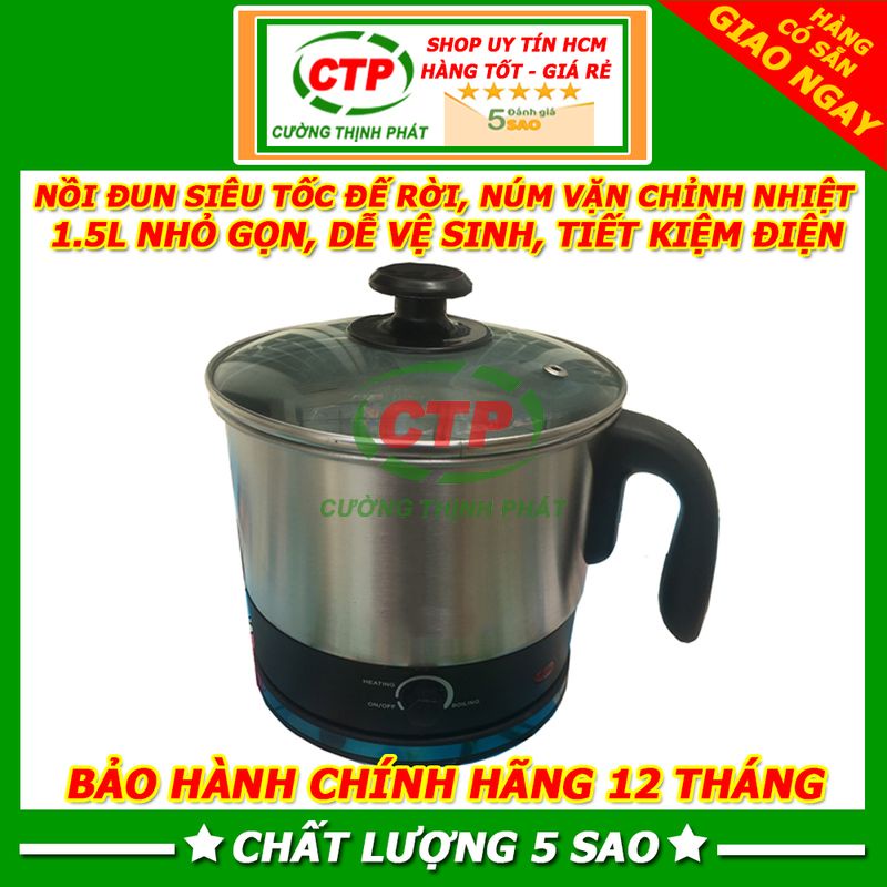 Nồi Đun Siêu Tốc Đế Rời Nút Vặn Chỉnh Nhiệt 1.5L