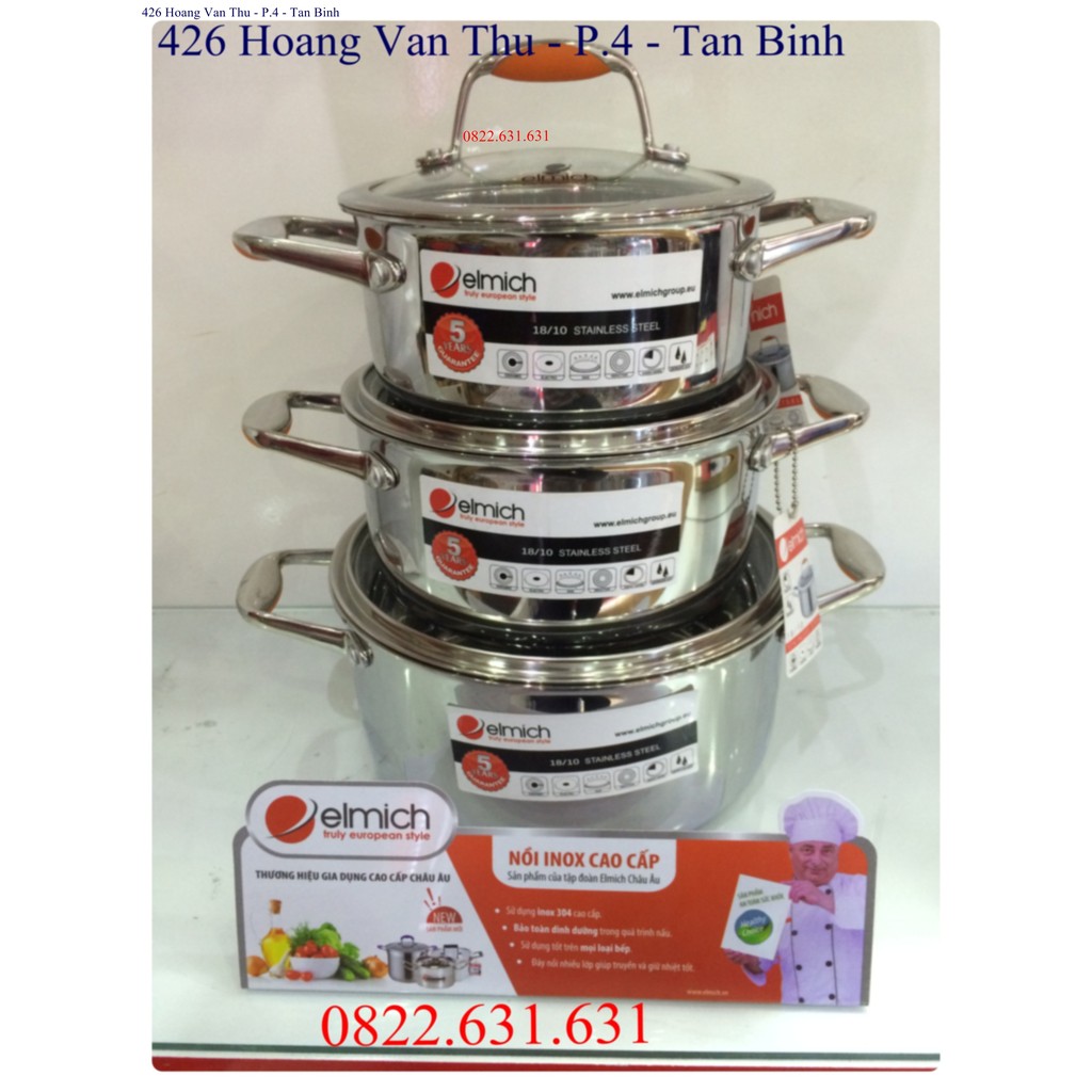 Nhà cửa & Đời sống > Dụng cụ nhà bếp > Nồi || Bộ nồi elmich inox 304 đáy liền Matador El0123 (3 chiếc 18cm 20cm 24cm hàng nhập cộng hòa séc)Còn hàng