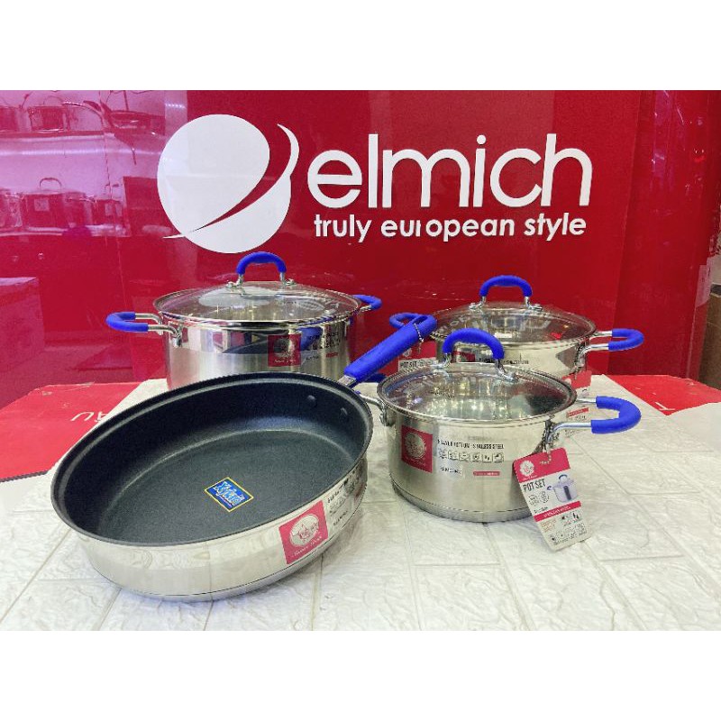 Giới thiệu Bộ nồi elmich smartcook 3 chiếc cỡ 18cm, 22cm, 26cm và 1 chảo inox Smartcook cỡ 26cm SM1497