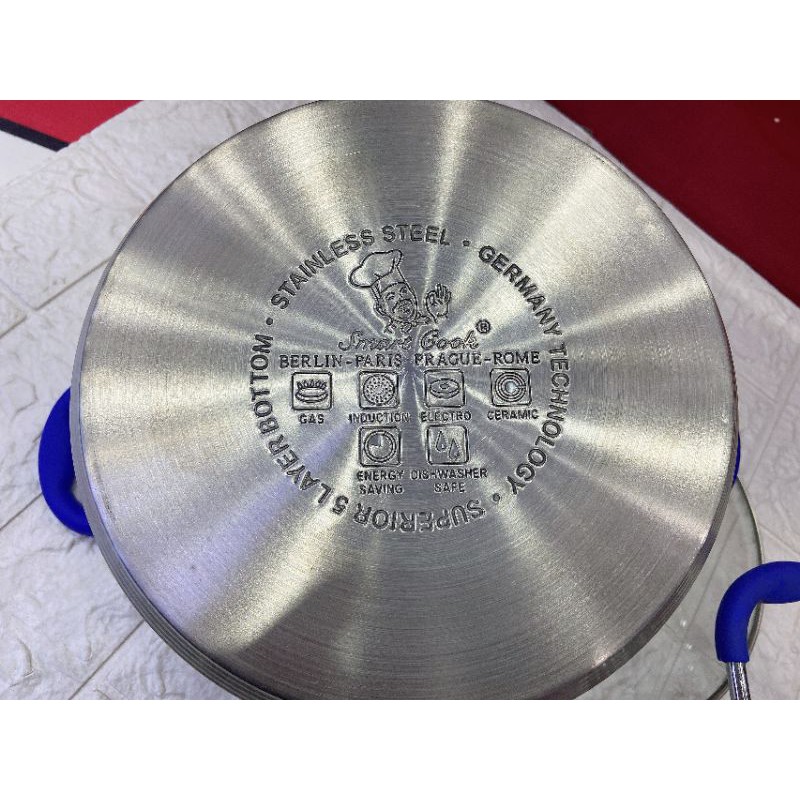 Thông số kỹ thuậtBộ nồi chảo Smart Cook SM1497 gồm có 3 nồi (18x10,5cm, 22x12,5cm và 26x15,5cm) và 1 chảo (26x6,5cm)