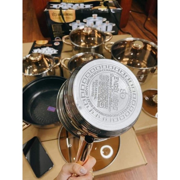 1.Bộ nồi ENGEL BERG 6 món 12 CHI TIẾT Mã EB-8013 nhập khẩu từ Đức 100% Set 6 món -12 chi tiết bao gồm :