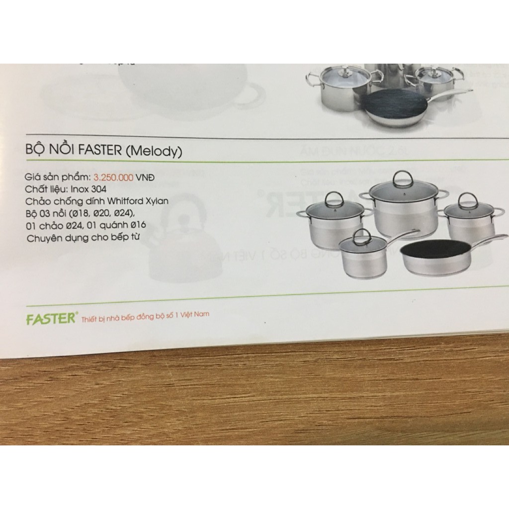 Nhà cửa & Đời sống > Dụng cụ nhà bếp > Nồi || Bộ nồi Faster Melody 5 món inox 304 cao cấp - Bảo hành 1 đổi 1 chính hãng FasterCòn hàng