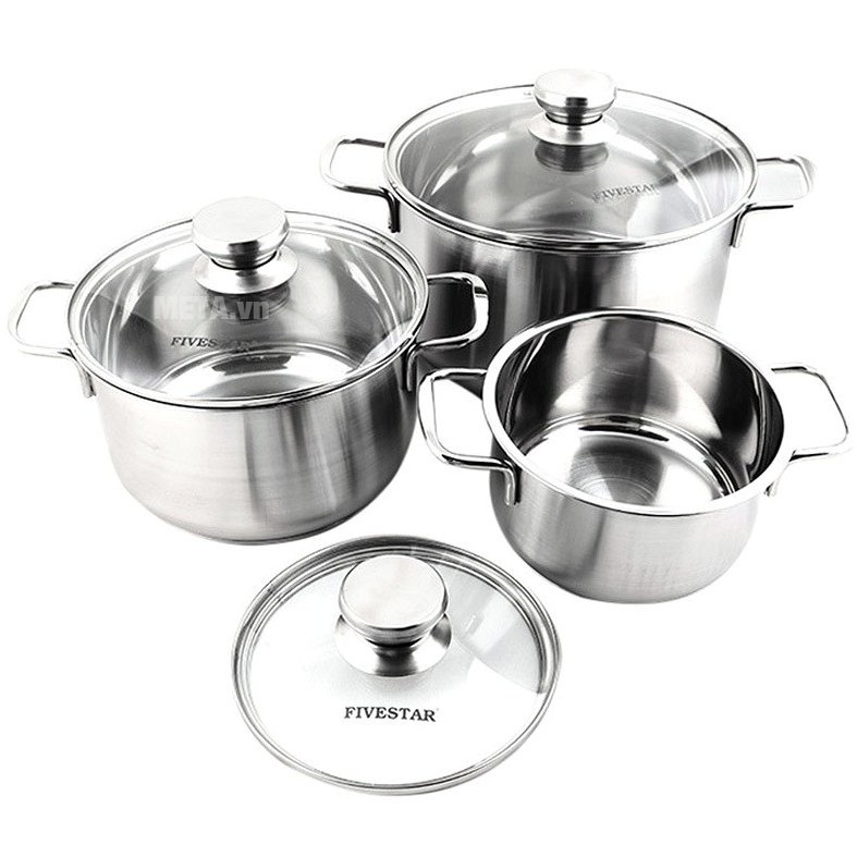Bộ nồi FIVESTAR 3 món,bộ nồi inox đáy từ fivestar đáy 3 lớp