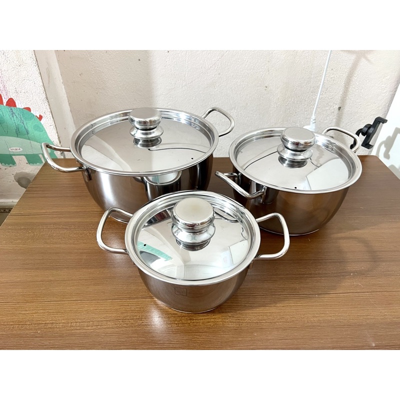 • Bộ nồi gồm 3 sản phẩm đường kính là 16 cm, 20 cm, 24 cm.