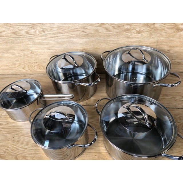 - Bộ nồi gồm 5 chiếc với kích cỡ khác nhau: