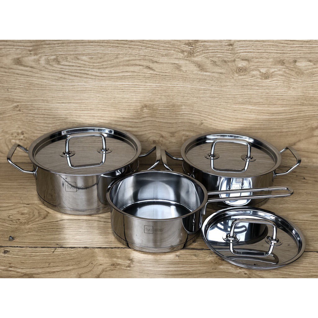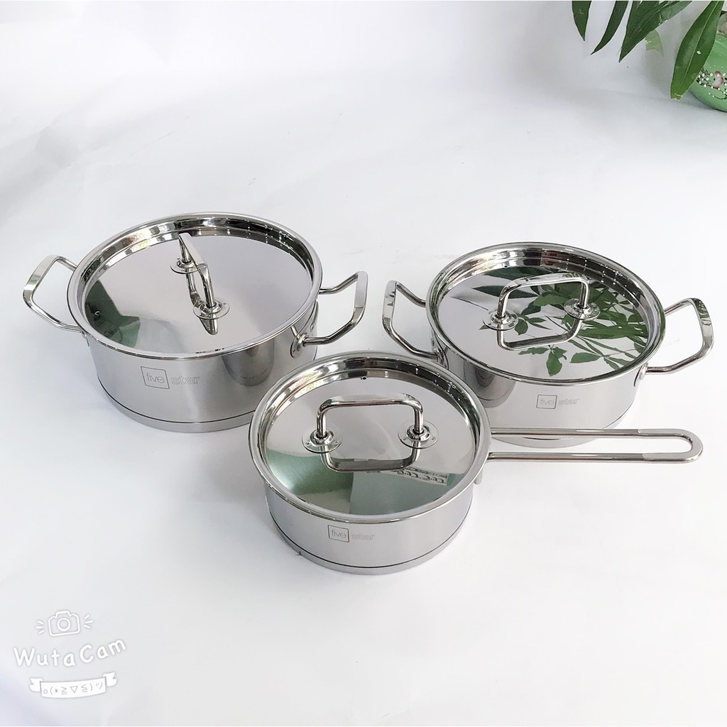 #Bộnồi inox 430 Fivestar FS-B3021 Standard 3 đáy bếp từ 3 món nắp inox (1 quánh 16 x 1 nồi 18cm x 1 nồi 20cm )Gồm 3 nồi 16, 18 & 20cm + 3 nắp inox
