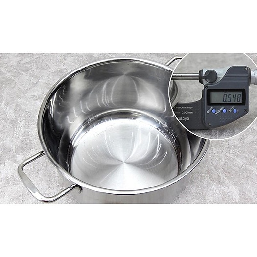 - Cấu tạo 3 lớp đáy, nhiệt lượng được tỏa đều khắp đáy nồi, giữ nhiệt lâu hơn, giữ thức ăn chín đều và giảm cháy khét hiệu quả.