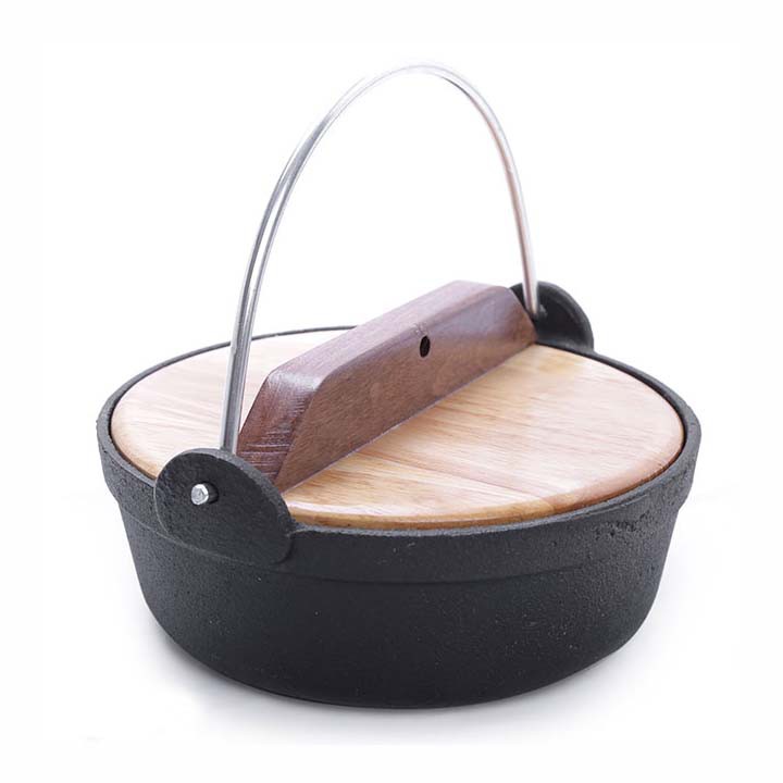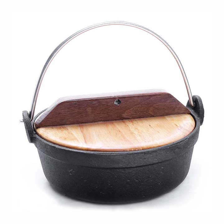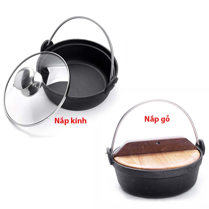 Chất liệu: gang đúc chống dính - Nắp gỗ/ nắp kính