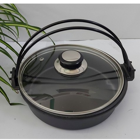 Nồi gang chống dính nắp kiếng có quai ( sử dụng bếp từ )