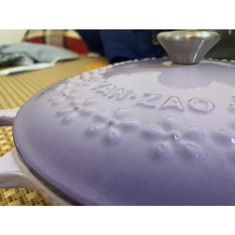 Nồi Gang YANZAO Tráng Men Màu Tím Hoa Văn 26cm Nội Địa China