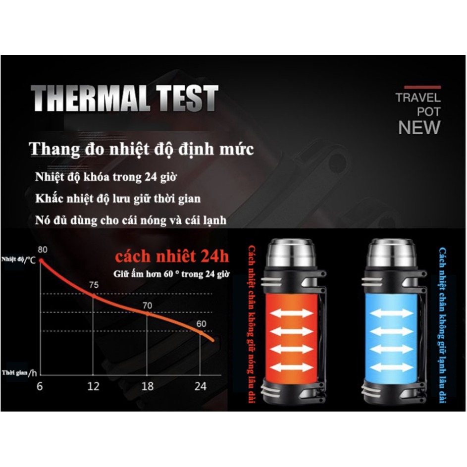 Nồi giữ nhiệt quai xách đi du lịch chân không THERMOS CUP 2000ml (Silver Black)