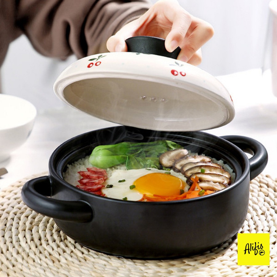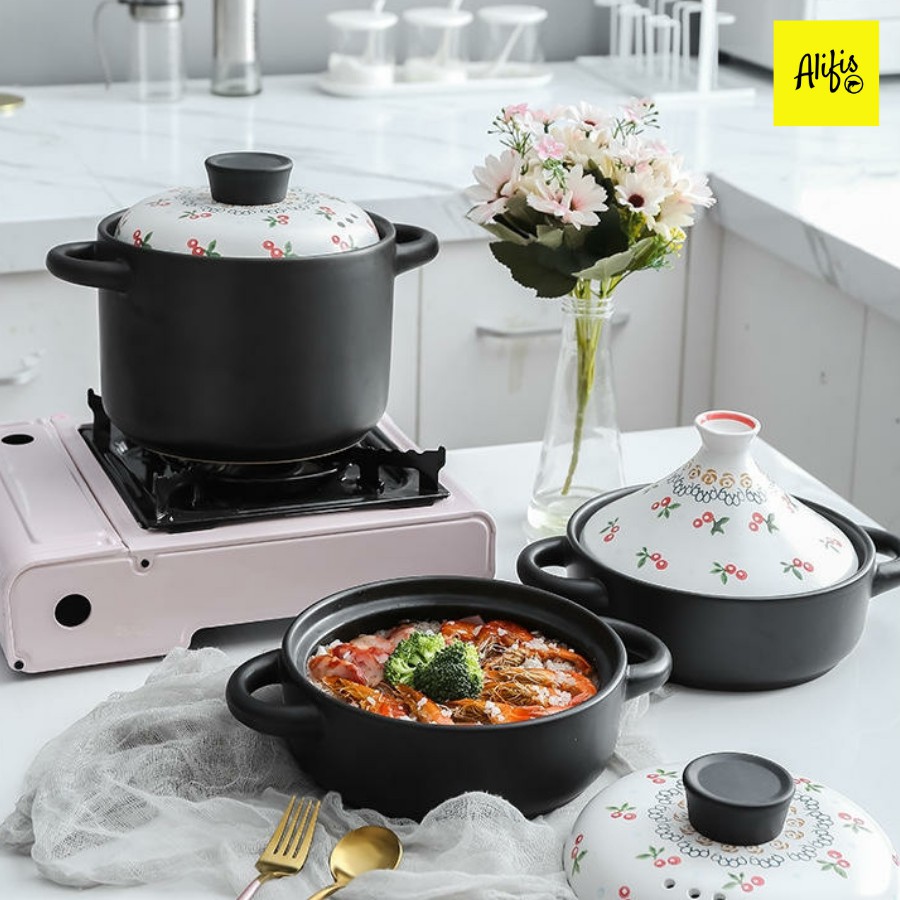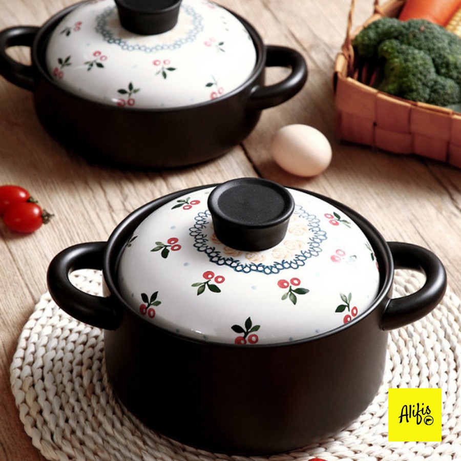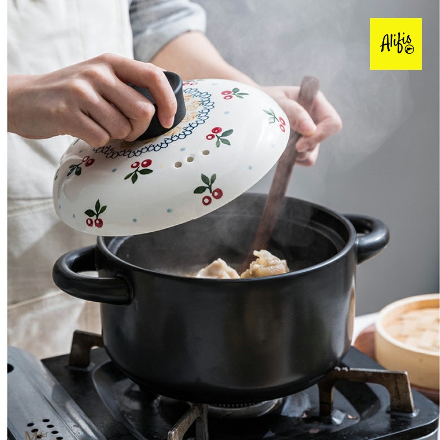 Nhà cửa & Đời sống > Dụng cụ nhà bếp > Nồi || Nồi gốm, nồi gốm sứ đa năng chịu nhiệt dùng được trên bếp ga nắp trắng họa tiết Cherry - bán kèm đế điện cho nồi gốm sứCòn hàng