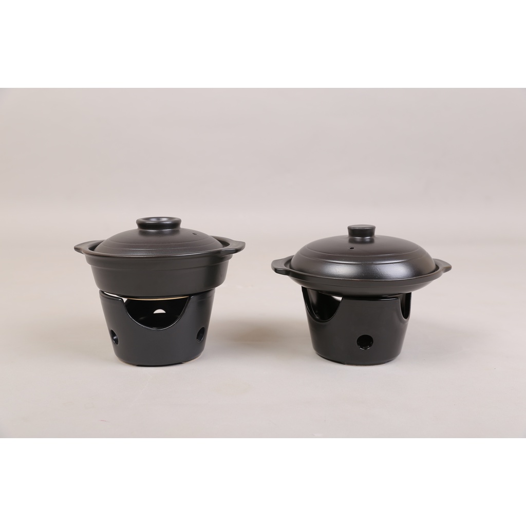 Nhà cửa & Đời sống > Dụng cụ nhà bếp > Nồi || Bộ nồi gốm và bếp cồn ăn lẩu 1 người Kiyohara Nhật Bản, Kèm đế kê gỗCòn hàng