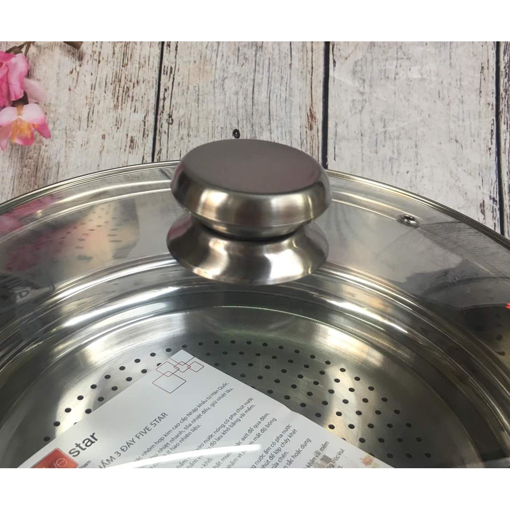 Nồi hấp 2 tầng inox Fivestar 3 đáy 24,26cm nắp kính dùng bếp từ -Shop Tiện Ích
