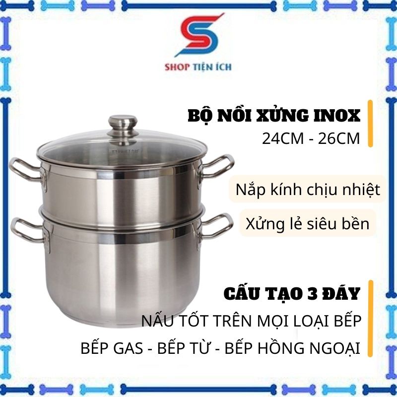 Nhà cửa & Đời sống > Dụng cụ nhà bếp > Nồi || Nồi hấp 2 tầng inox Fivestar 3 đáy 24,26cm nắp kính dùng bếp từ -Shop Tiện ÍchCòn hàng
