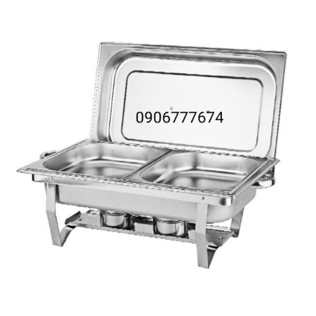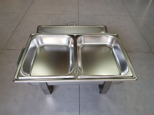 Nồi hâm buffet inox Dày chữ nhật 2 ngăn giá rẻ+ Kích thước: L580xW352xH302 mm