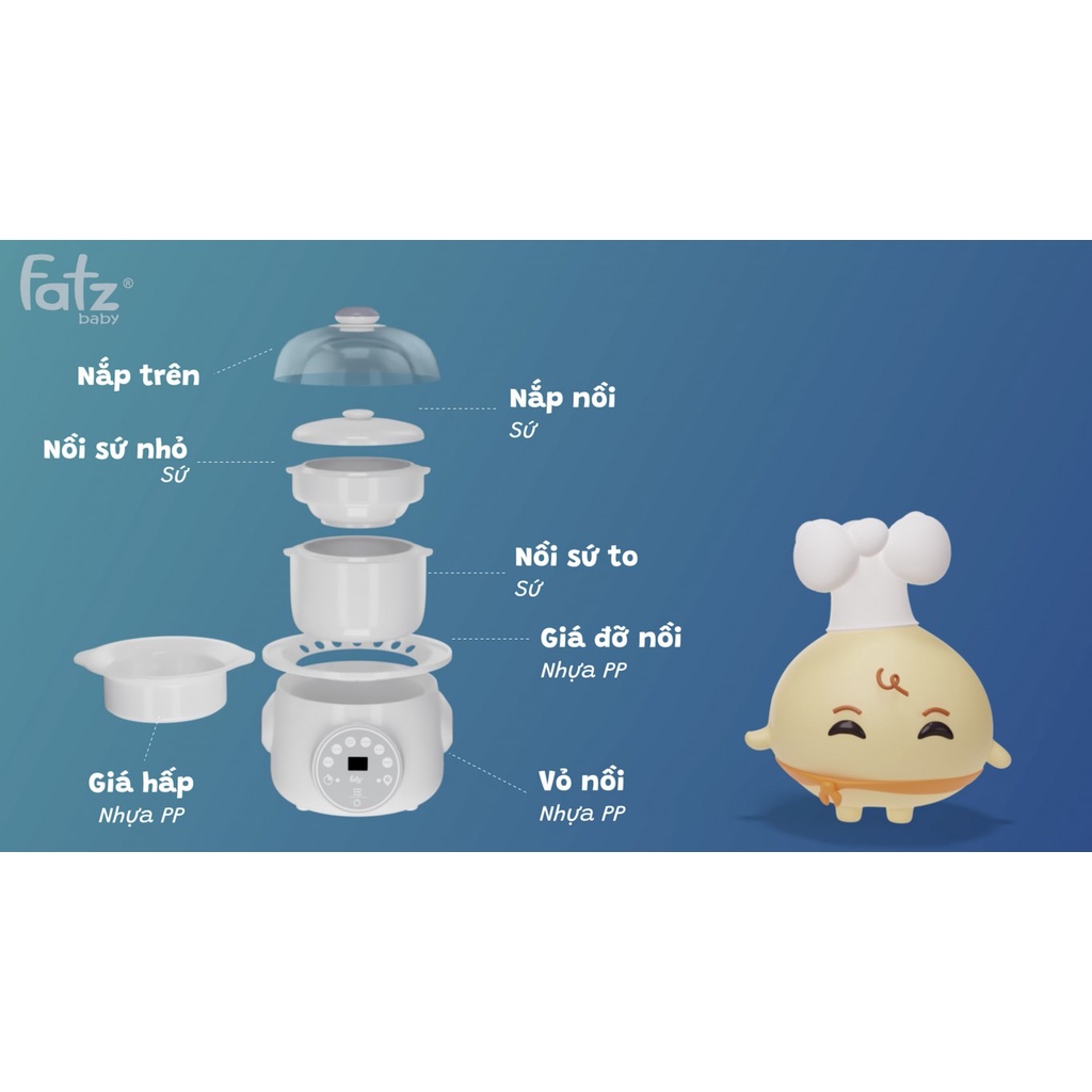 -Chất liệu an toàn: Với thiết kế hiện đại, được làm chất liệu sứ ceramic, không độc hại, chống trào, chống sát dễ lau chùi… nồi hầm cách thuỷ Fatz Baby xứng đáng là món đồ không thể thiếu trong gia đình có bé đang bước vào chế độ ăn dặm.