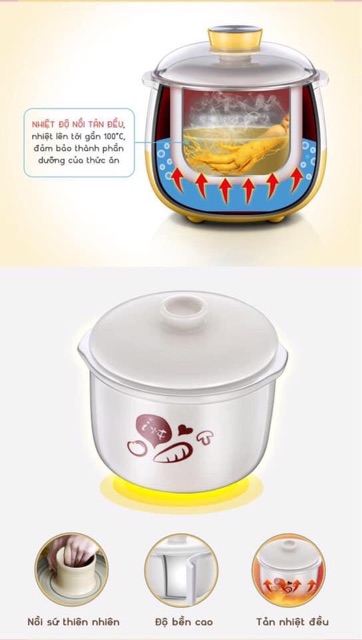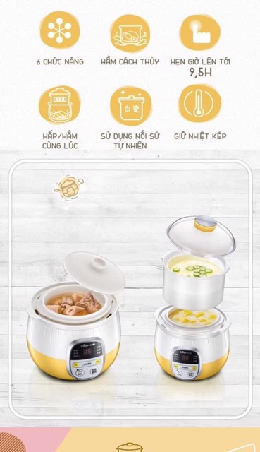 👉 6 tính năng : hấp, hầm canh, nấu cháo, chưng yến, súp chè, giữ ấm