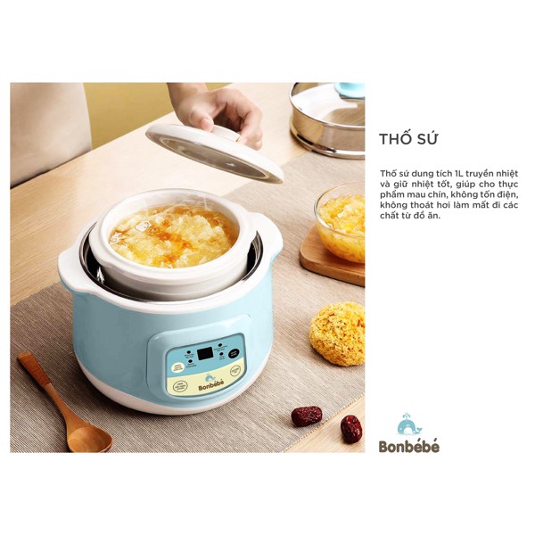 Thiết Bị Điện Gia Dụng > Đồ gia dụng nhà bếp > Nồi nấu chậm & Dụng cụ nấu chân không || Nồi hầm cách thủy thông minh bonbebe bb31 5IN1Còn hàng
