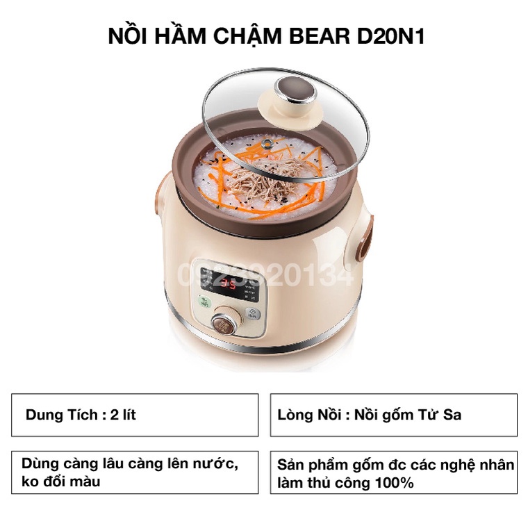 NỒI NẤU CHẬM – NỒI HẦM BEAR MÃ DDG-D20N1Dung Tích : 2 lít