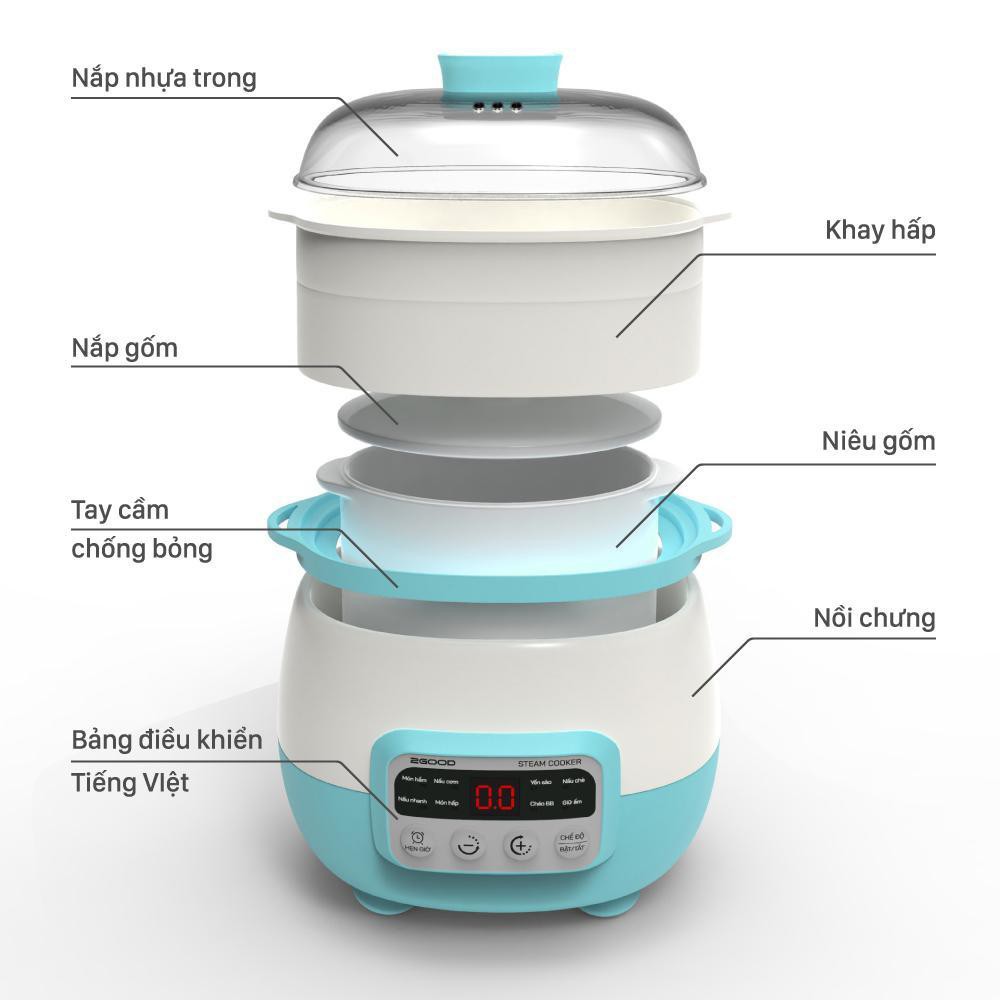 Nhà có 2 bé trở lên không thể không biết đến Nồi Hầm Chậm Cách Thủy 2GOOD A300 3.1 Lit ( Niêu gốm 1,6L + Lồng hấp 1,5L)
