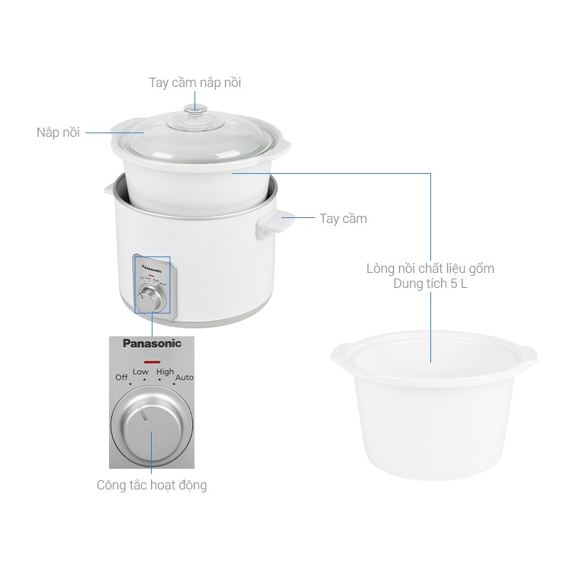 Sản phẩm đa chức năng nấu giúp người nội trợ chuẩn bị các món: hầm thịt, làm mứt, kho thịt, nấu chè, nấu phở, làm sữa chua, nấu súp. Nồi nấu chậm Panasonic là sản phẩm thông minh, hiện đại, tiện dụng, hỗ trợ gia đình những bữa ăn ngon chế biến đơn giản mà giàu dinh dưỡng hơn, tốt hơn cho sức khỏe mỗi ngày.