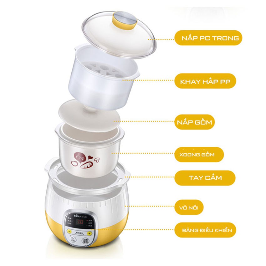 Nồi Hầm Chậm Ninh Nấu Cháo Chưng Yến Tiềm Cách Thủy Cho Bé BEAR Dung Tích 0.8L Chức Năng Hẹn Giờ Giữ Ấm 8hCông suất: 200W