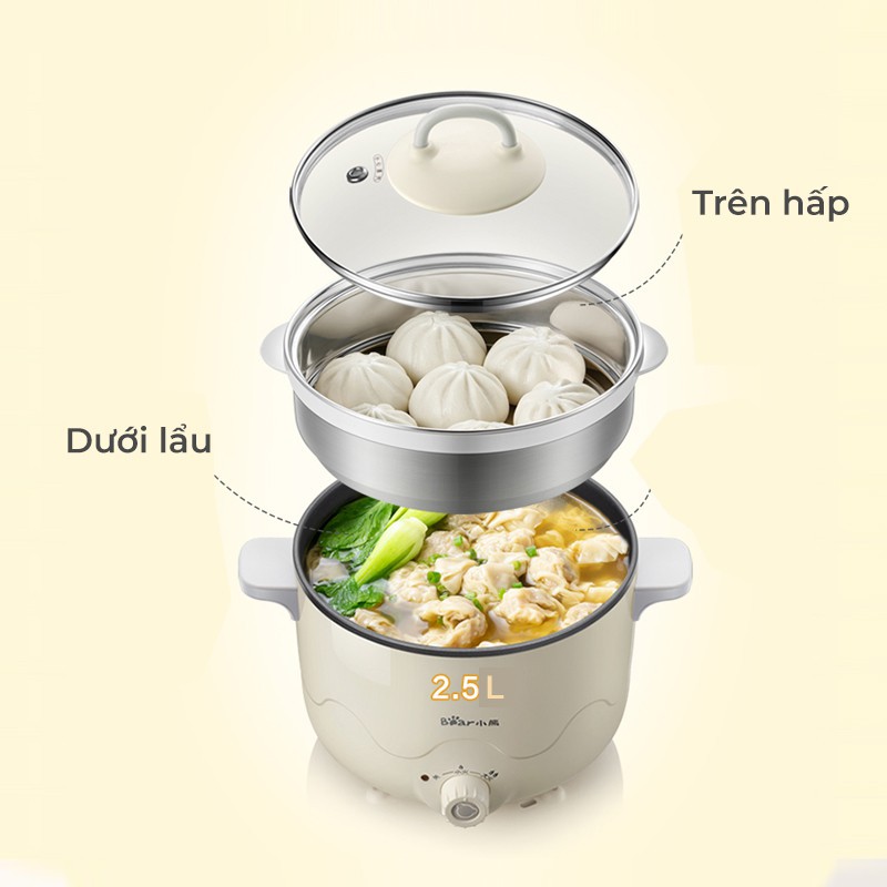 Nồi hầm cháo kèm lồng hấp Bear [ĐỜI MỚI NHẤT] dung tích 2,5L - Bếp điện đa năng Bear 2in1 chính hãng [BẢO HÀNH 1 ĐỔI 1]NỒI ĐIỆN ĐA NĂNG BEAR