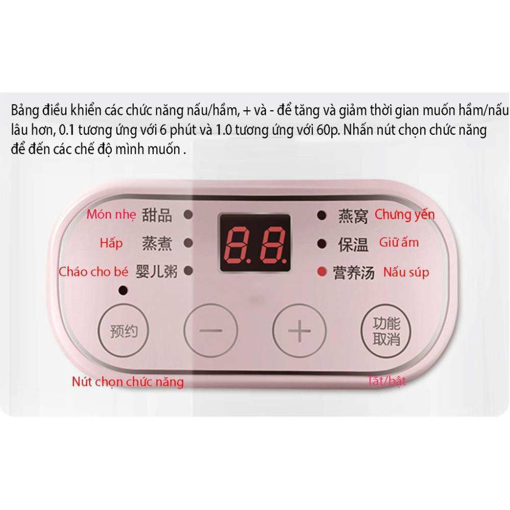 » Có 6 tính năng : hấp, hầm canh, nấu cháo, chưng yến, súp chè, giữ ấm