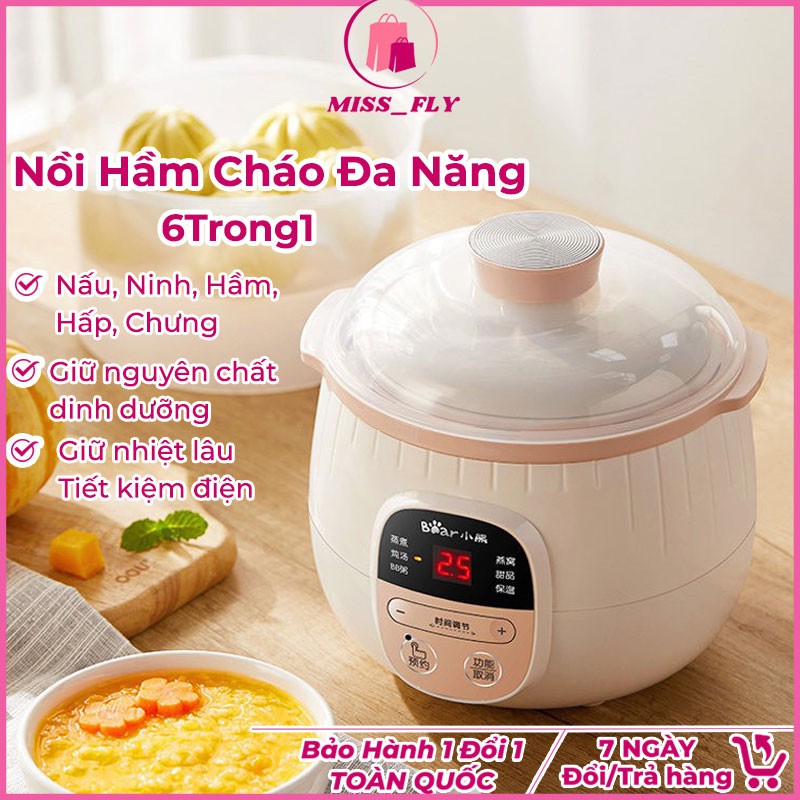 Thiết Bị Điện Gia Dụng > Đồ gia dụng nhà bếp > Nồi nấu chậm & Dụng cụ nấu chân không || Nồi Hầm Cháo, Nấu, Ninh, Hấp Cách Thủy 6 IN 1, Nồi hầm cháo BEAR chính hãng dành cho bé tiện lợi, siêu nhanhCòn hàng