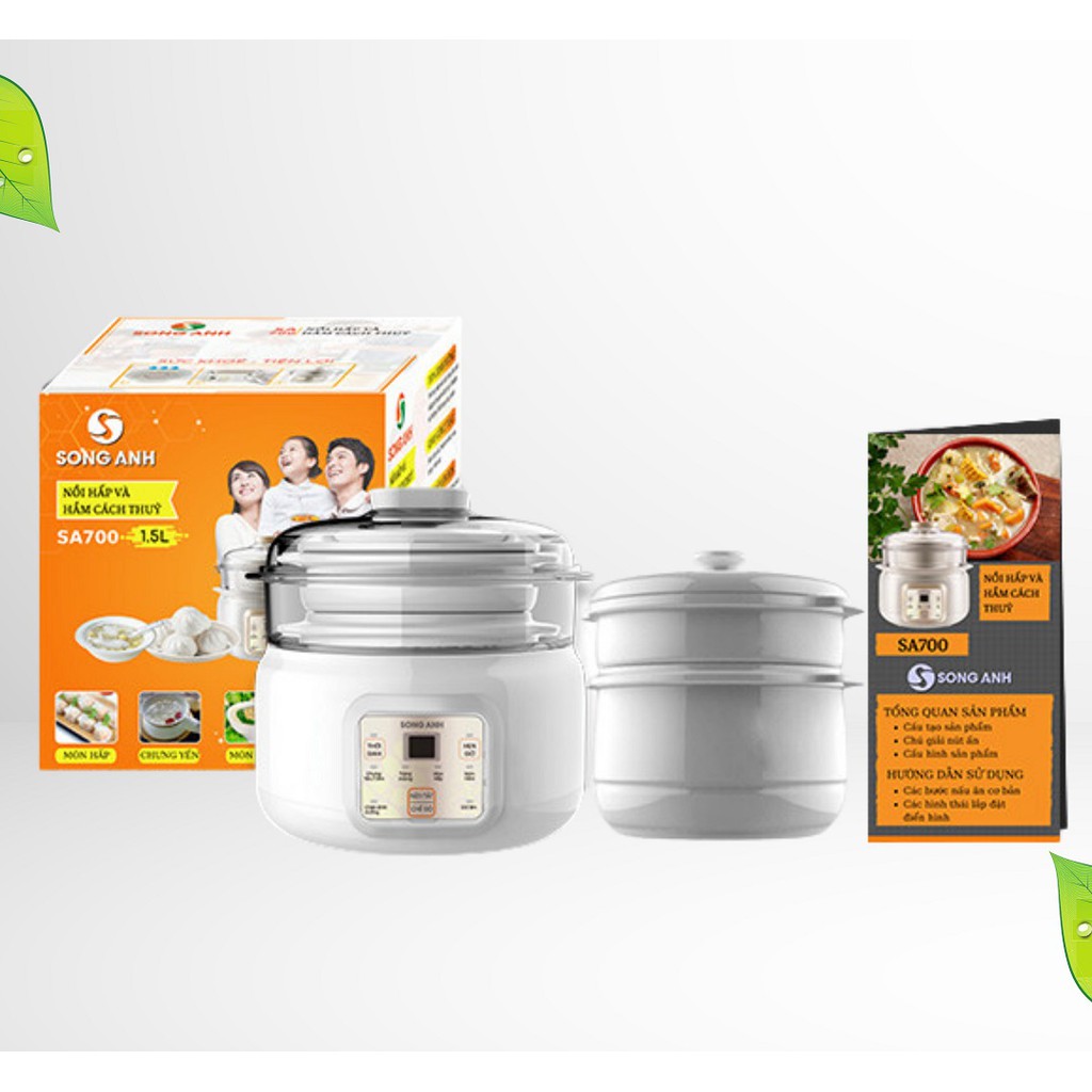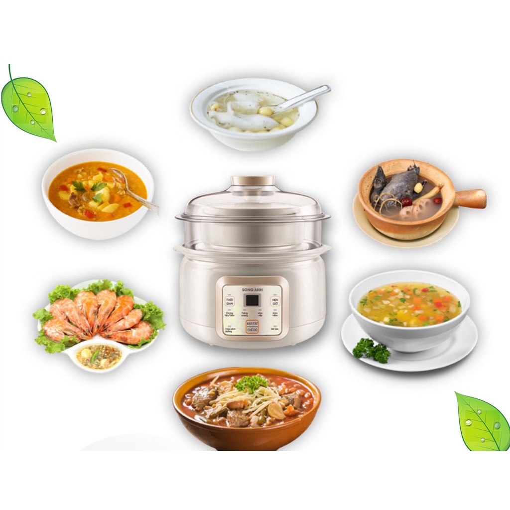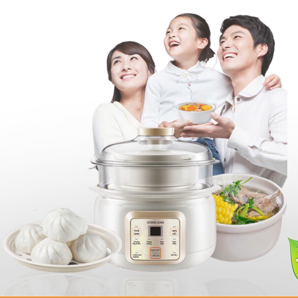 Thiết Bị Điện Gia Dụng > Đồ gia dụng nhà bếp > Nồi nấu chậm & Dụng cụ nấu chân không || Nồi Hầm Cháo, Ninh, Hầm, Nồi Chưng Cách Thuỷ Nấu Yến Có 2 bát Sứ kèm Khay Hấp Bánh - Thường hiệu SONGANH - SA700Còn hàng