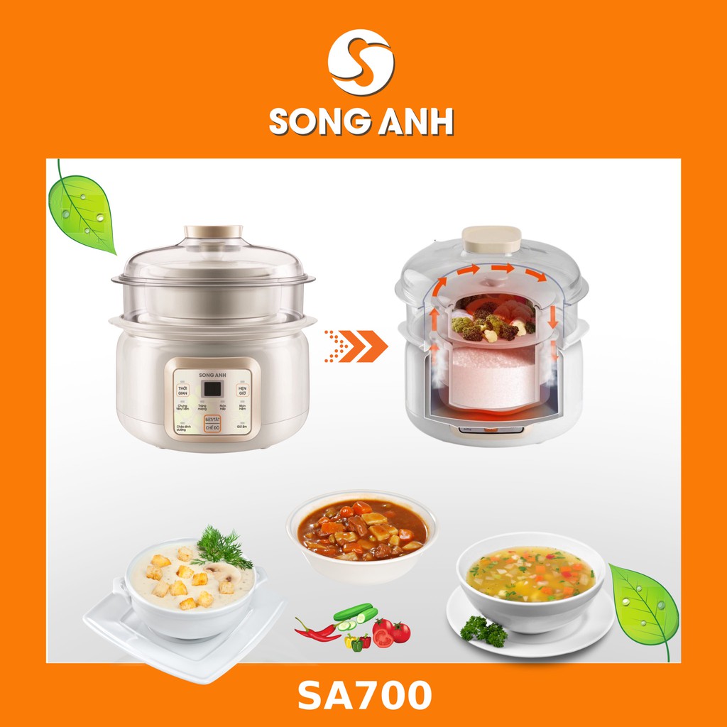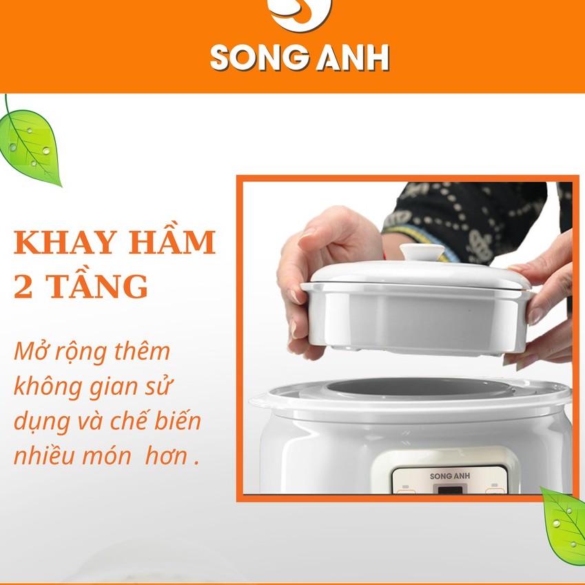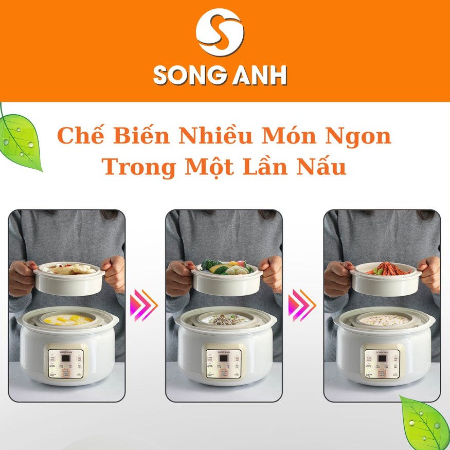 Nồi Hầm Cháo, Nồi ninh Cháo Chậm Nồi Hấp Cách Thủy SONG ANH Cao Cấp - Bảo Hành 3 Tháng