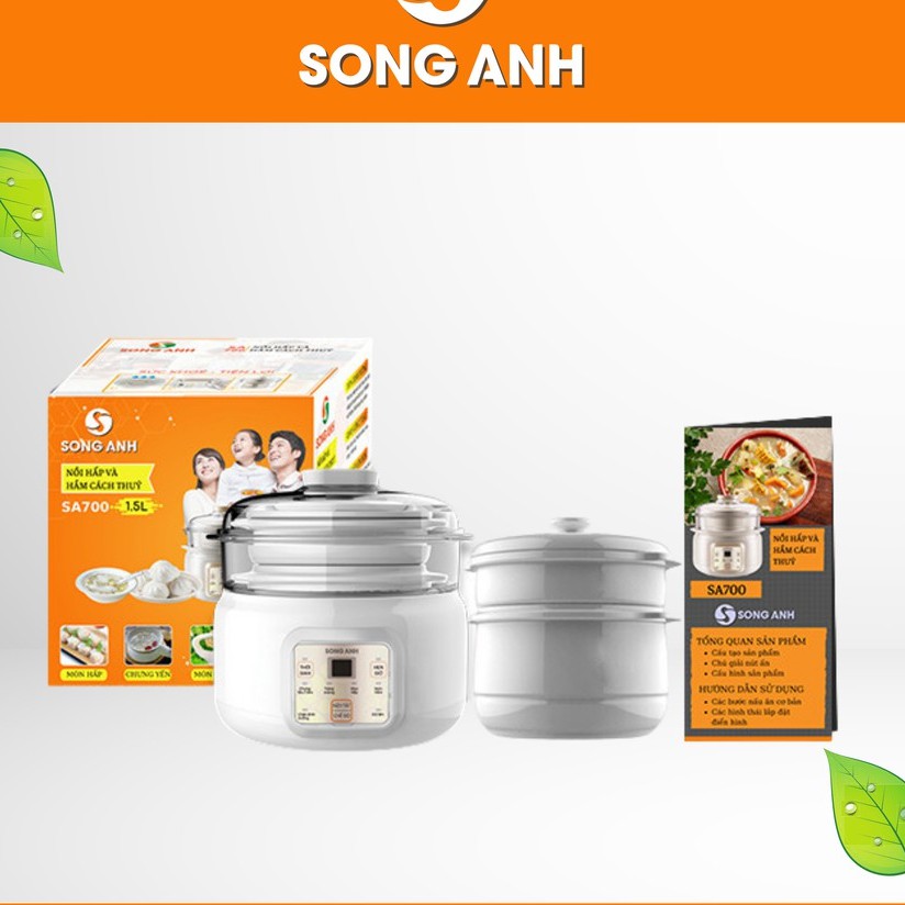 - Nồi hầm cháo Song Anh dung tích 1,5l và sử dụng nguyên lý hầm chậm cách thủy hỗ trợ giữ nguyên vị ngọt tự nhiên và các vitamin có trong thực phẩm.