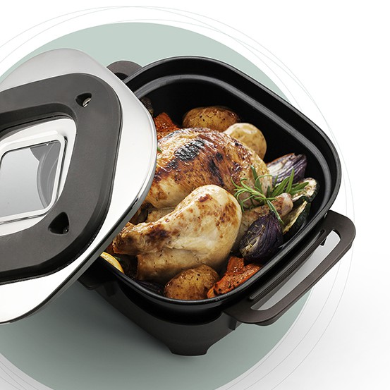 Đế nồi chắc chắn, cố định trong quá trình nấu. Trên nắp nồi có cửa sổ kính giúp giám sát thức ăn trong quá trình nấu. Lắp ráp dễ dàng và an toàn. Dễ dàng vệ sinh.
