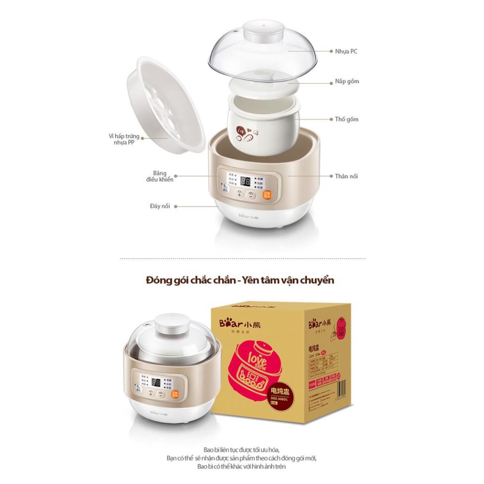 Tên sản phẩm: Nồi hầm điện đa năng màu be Bear DDZ-A08D1 6 chế độ hoạt động nhựa PP và gốm sứ an toàn thiết kế nhỏ gọn sang trọng