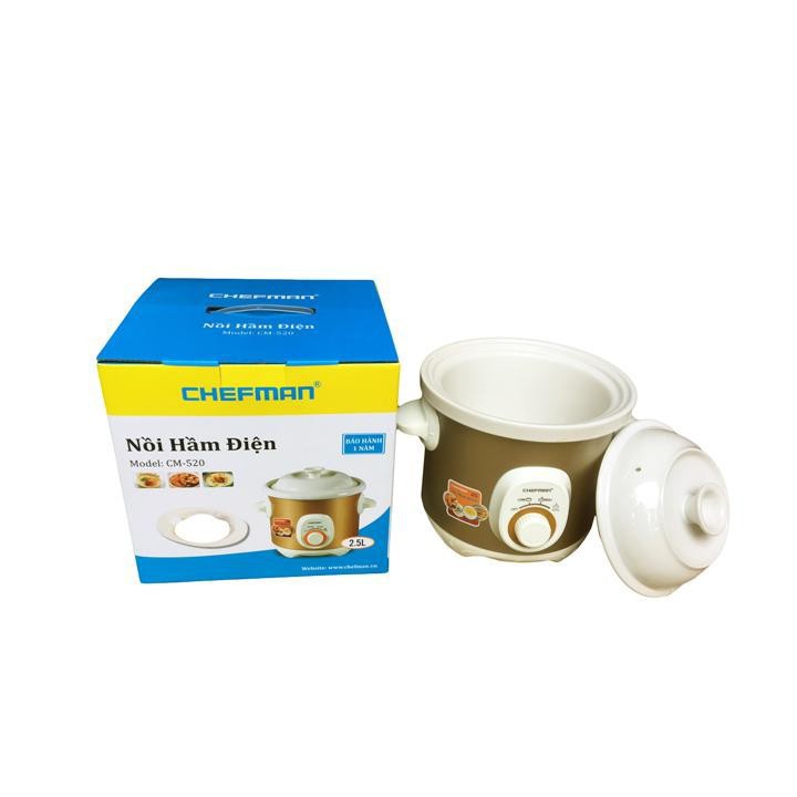 Nồi hầm điện kho cá, nồi hầm cháo đa năng-Nồi kho cá Chefman CM-520 được sản xuất theo công nghệ hiện đại, sang trọng, đa năng. Nồi hầm nấu đa năng CM-520 sử dụng lõi nồi bằng sứ an toàn tuyệt đối không sản sinh chất gây nguy hại cho cơ thể.