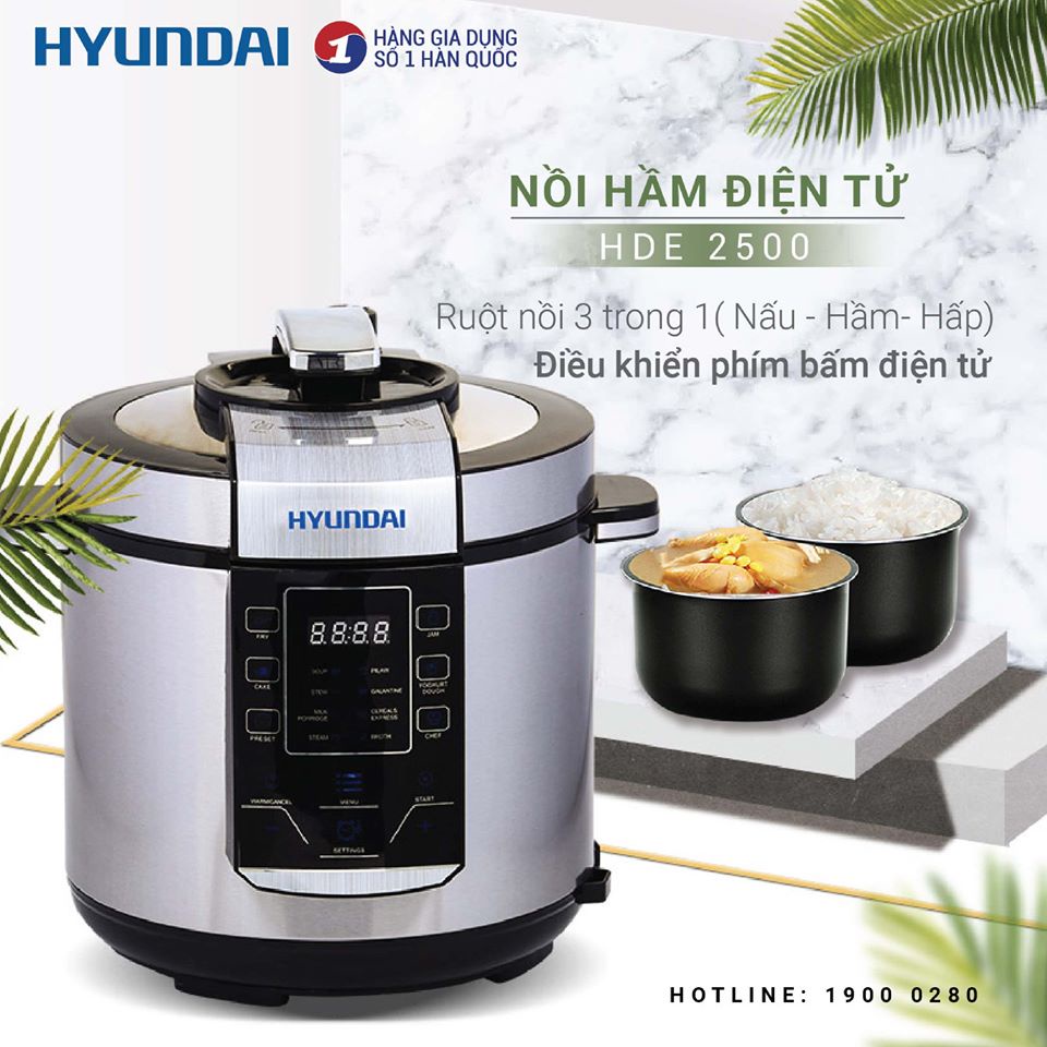 Thiết Bị Điện Gia Dụng > Đồ gia dụng nhà bếp > Nồi áp suất || Nồi hầm điện tử Hyundai HDE-2500S, Dung tích 6L, Công suất 900W, Bảo hành 12 thángCòn hàng