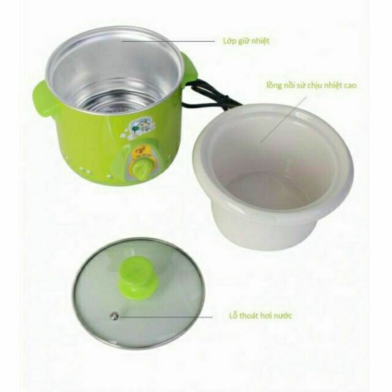 Nồi kho cá màu xanh 1,5L dùng để nấu và hầm các loại thực phẩm và thịt. Trước khi nấu ta cho thực phẩm và cho lượng nước khoảng 80% so với nồi (tránh nước tràn ra trong quá trình nấu), sau đó lau khô bề mặt lồng sứ và đặt vào trong nồi để nấu, thời gian làm chín thức ăn từ 3-5 giờ, có 3 chức năng lựa chọn trong khi nấu: