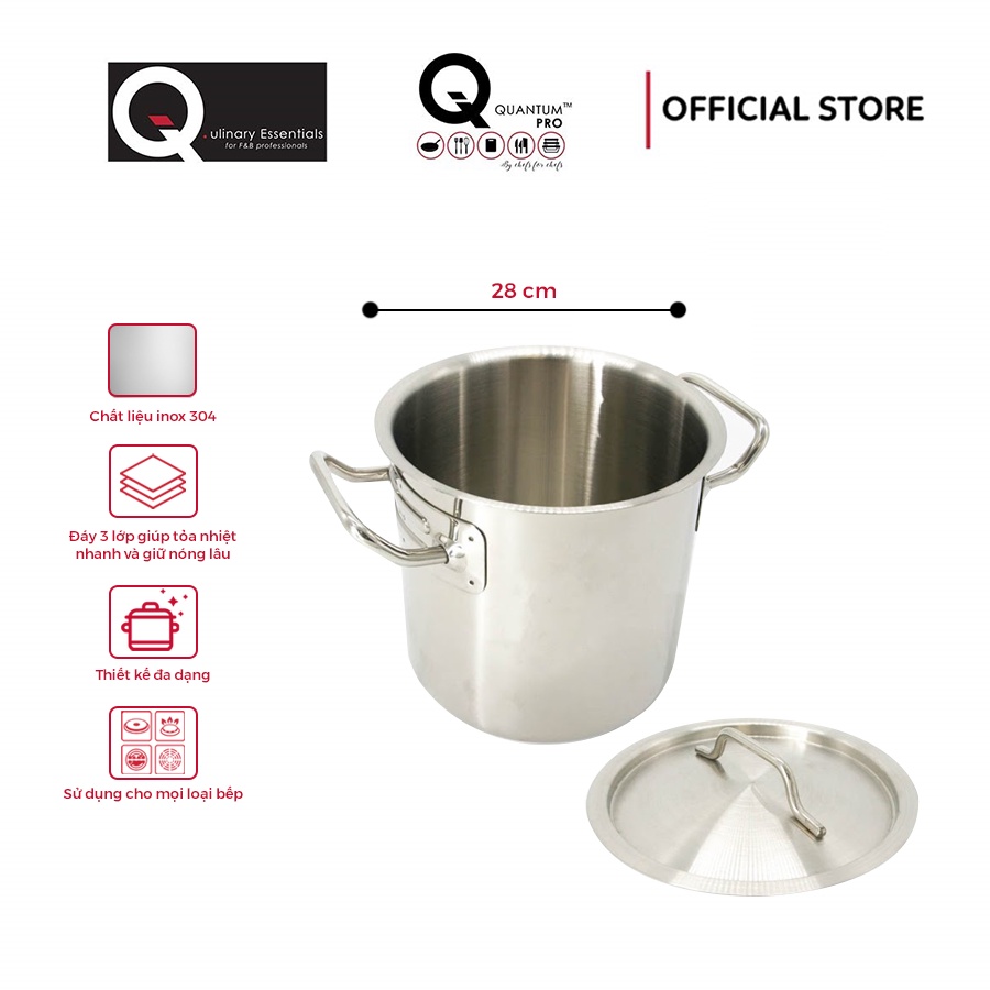 - Nồi Hầm Inox Quantum Đường Kính 28cm - Kèm Nắp được sản xuất trên dây chuyền công nghệ hiện đại đảm bảo độ bền và tính an toàn cao. Bộ nồi làm bằng chất liệu inox cao cấp an toàn cho sức khỏe. Phù hợp nấu các món hầm, soup cho gia đình.